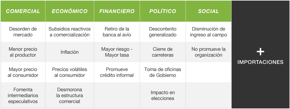 - Sinaloa es el único Estado con problemas de comercialización, provocado por la publicación de una Base que no corresponde a la situación de mercado y al modelo de cálculo.