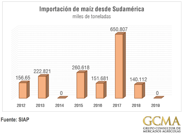 Las compras de maíz desde el cono sur se ubicarían en un nivel récord de concretarse las estimaciones, luego de que el acumulado anual no ha rebasado las 650,000 toneladas establecidas en el 2017.