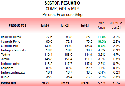 • Los precios de la canasta básica se incrementaron a 5.0% al cierre del mes julio, contra 4.8% que subió en junio.