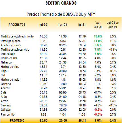 Del cierre de junio a la primera quincena de julio el costo de la canasta básica sube de 4.8% a 5.0%