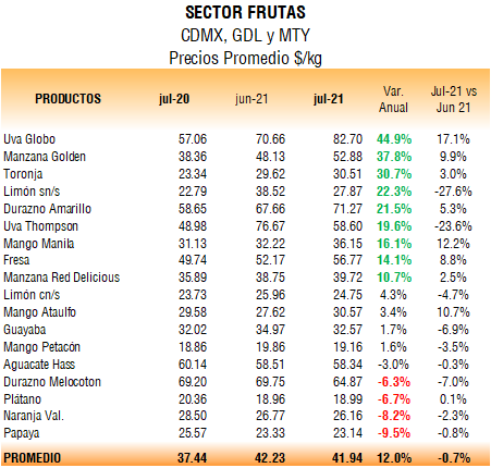 • Factores climáticos adversos propician menor oferta de producto a los canales comerciales.
