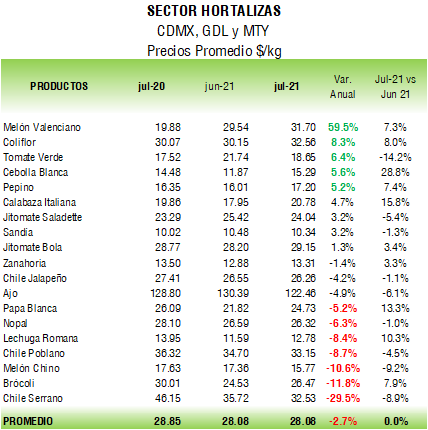• La sequía redujo la producción, lo cual afectó a la oferta nacional lo que ocasionó altos precios, pero en el mes el aumento es moderado.