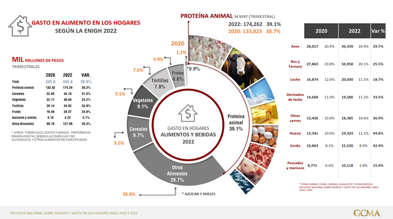- Sube a 39.1% la participación del gasto en Proteína animal, y valor aumentó 30.2%