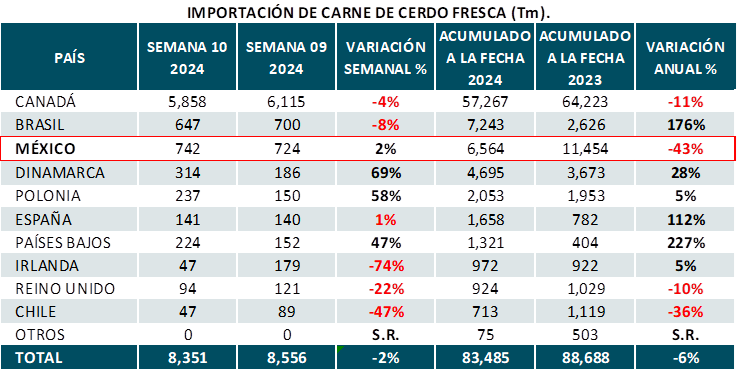 Importaciones de carne de cerdo de EE.UU. semana 10 del 2024: