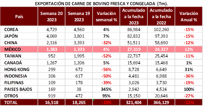 Importaciones y Exportaciones de Carne de Res Fresca de EUA