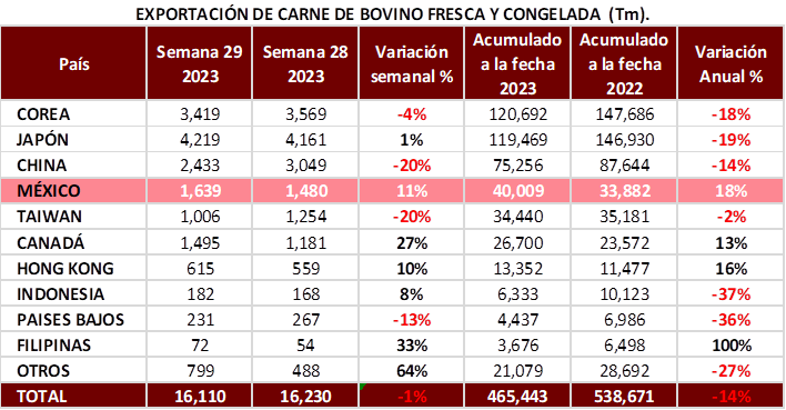 Importaciones y Exportaciones de Carne de Res Fresca de EUA