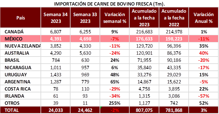 Las importaciones semanales de carne de res de EUA presentan un decremento esta semana.