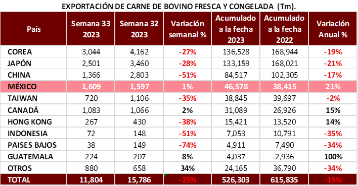 Importaciones y Exportaciones de Carne de Res Fresca de EUA