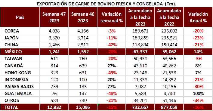 Importaciones y Exportaciones de Carne de Res Fresca de EUA