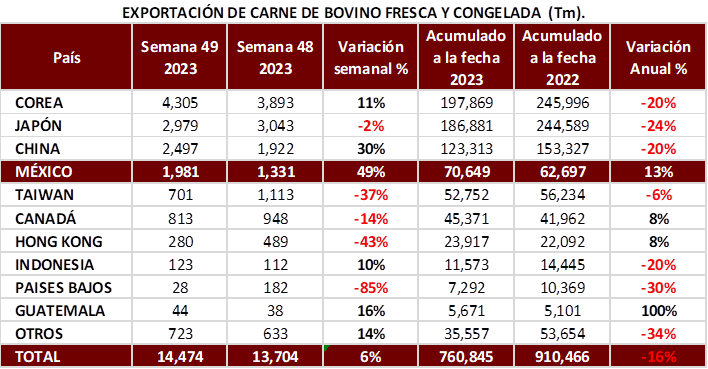 Importaciones y Exportaciones de Carne de Res Fresca de EUA