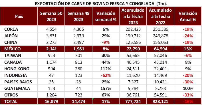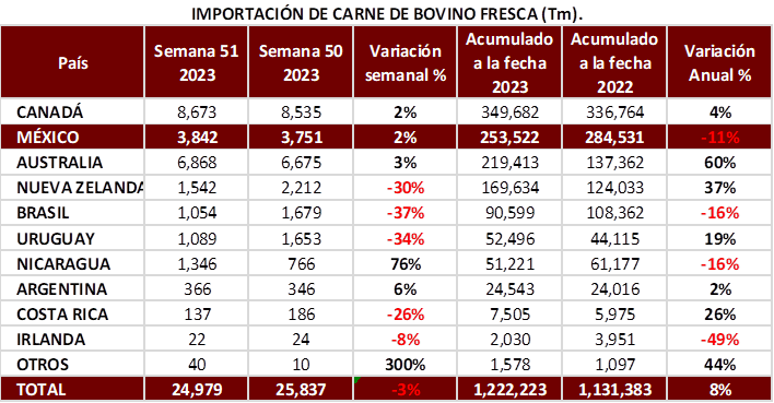 Importaciones y Exportaciones de Carne de Res Fresca de EUA