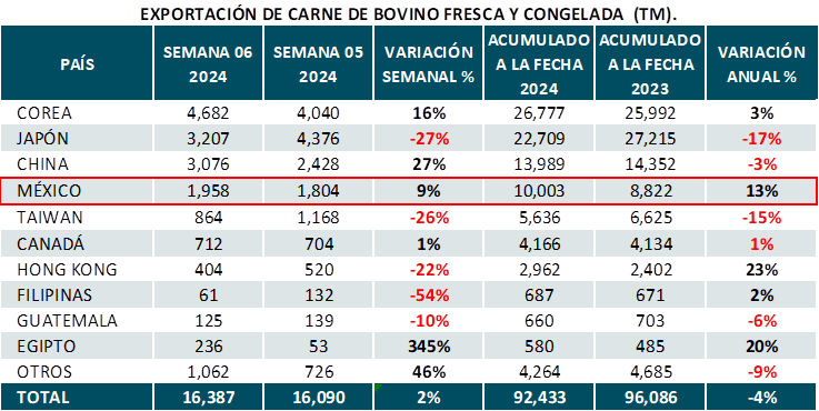 Exportaciones de carne de res de EE.UU. semana 06 del 2024: