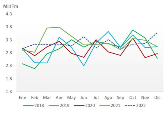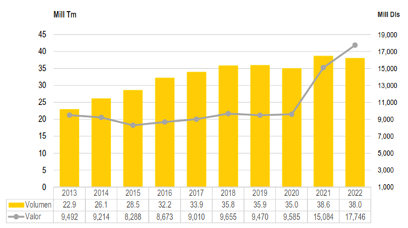 Importación de granos y oleaginosas 2022: Récord en valor con 17.7 mil mill de dólares y el segundo volumen más alto con 38 mill tm