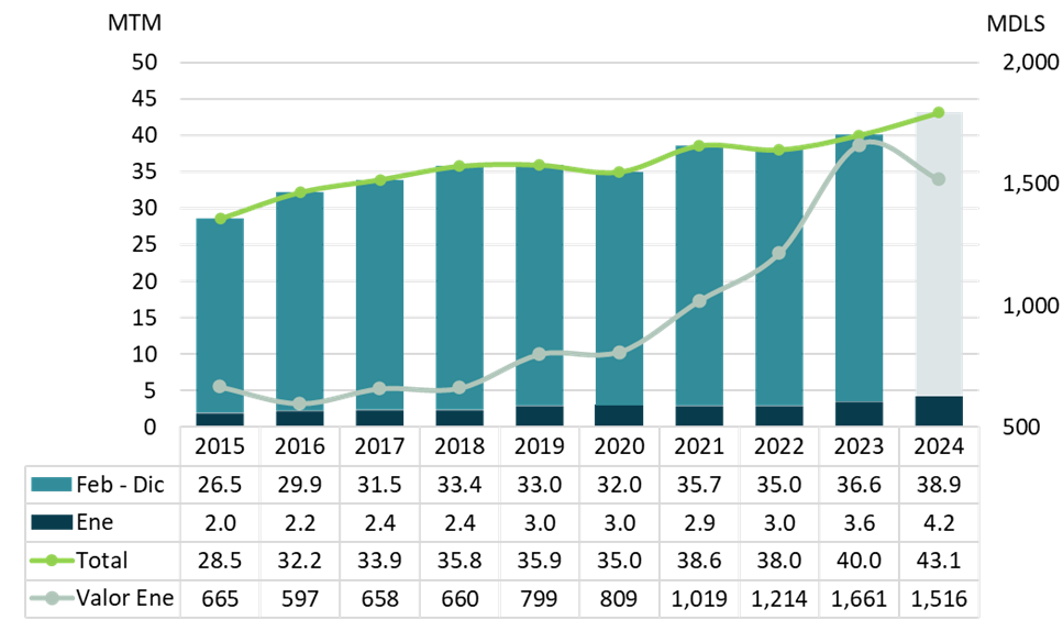 2024 inicia con récord de 4.2 MTM en compras de granos y oleaginosas; 17.7% superiores en volumen, mientras su valor cae 8.7%