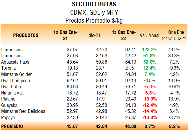 - En el caso específico del limón con semilla, por cuestiones propias de la ubicación geográfica de las plantaciones en zonas productoras de Oaxaca, Guerrero y Colima, la producción es baja.