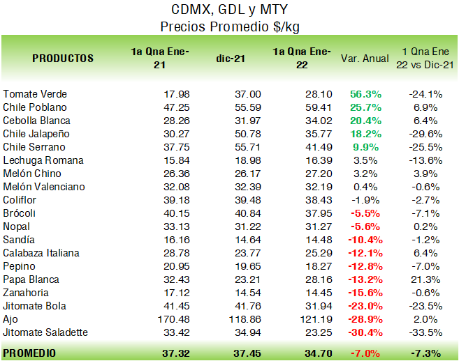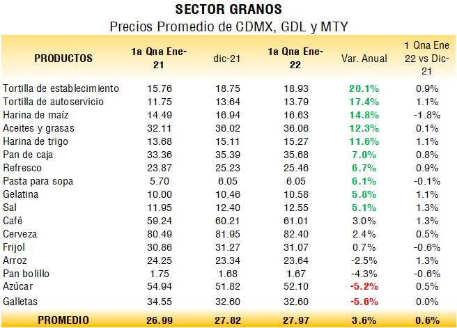 - Los precios de la canasta básica se incrementan 11.6% a la 1er quincena de enero 2022 contra 9.8% de diciembre 2021.