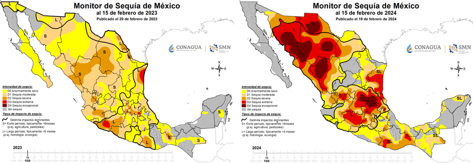 Actualización al 20 de febrero, con cifras del Monitor de sequía de la CONAGUA del 19 de febrero de 2024.
