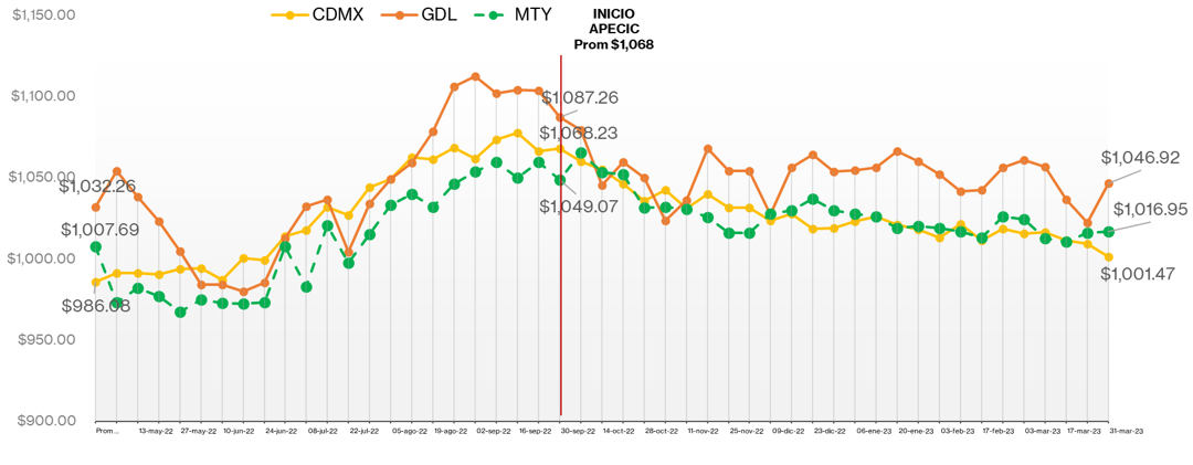 Al 31 de marzo, el precio de los Artículos de la Canasta Básica «PACIC | APECIC», se comportaron de la siguiente manera: