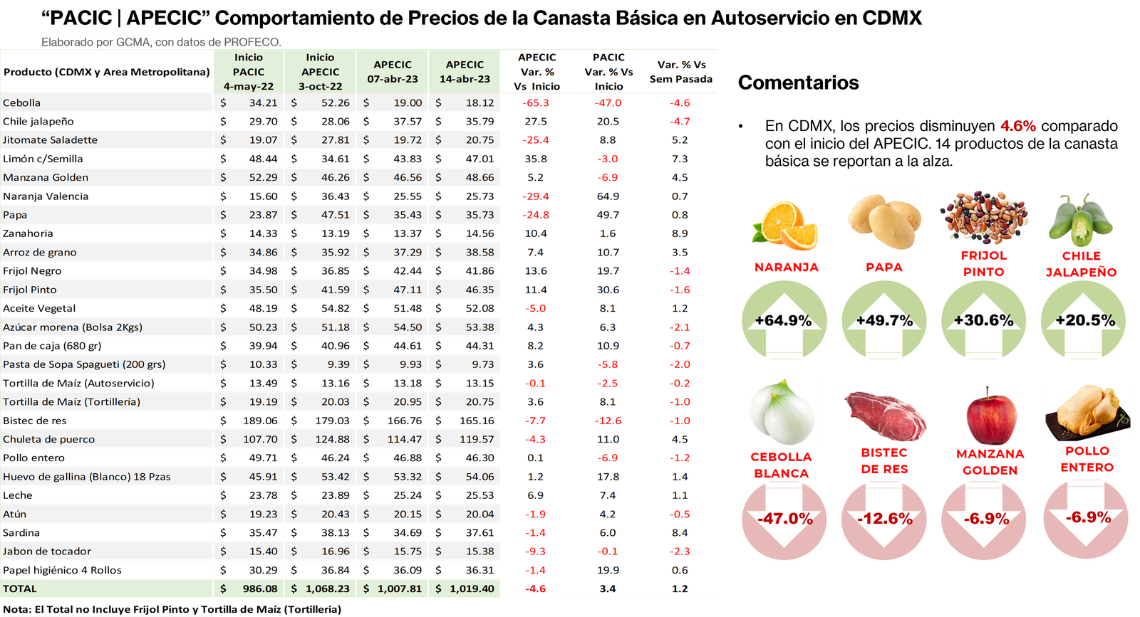 Al 14 de abril, el precio de los Artículos de la Canasta Básica «PACIC | APECIC», se comportaron de la siguiente manera: