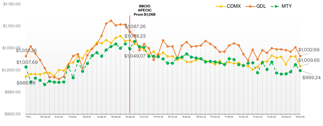 Promedio: $1,068 > $1,013.86 = -5.1%