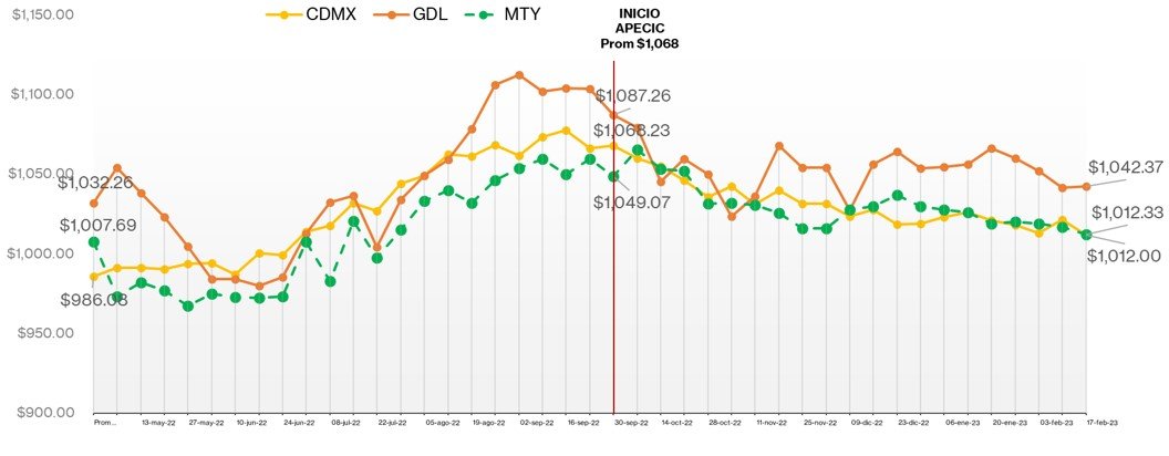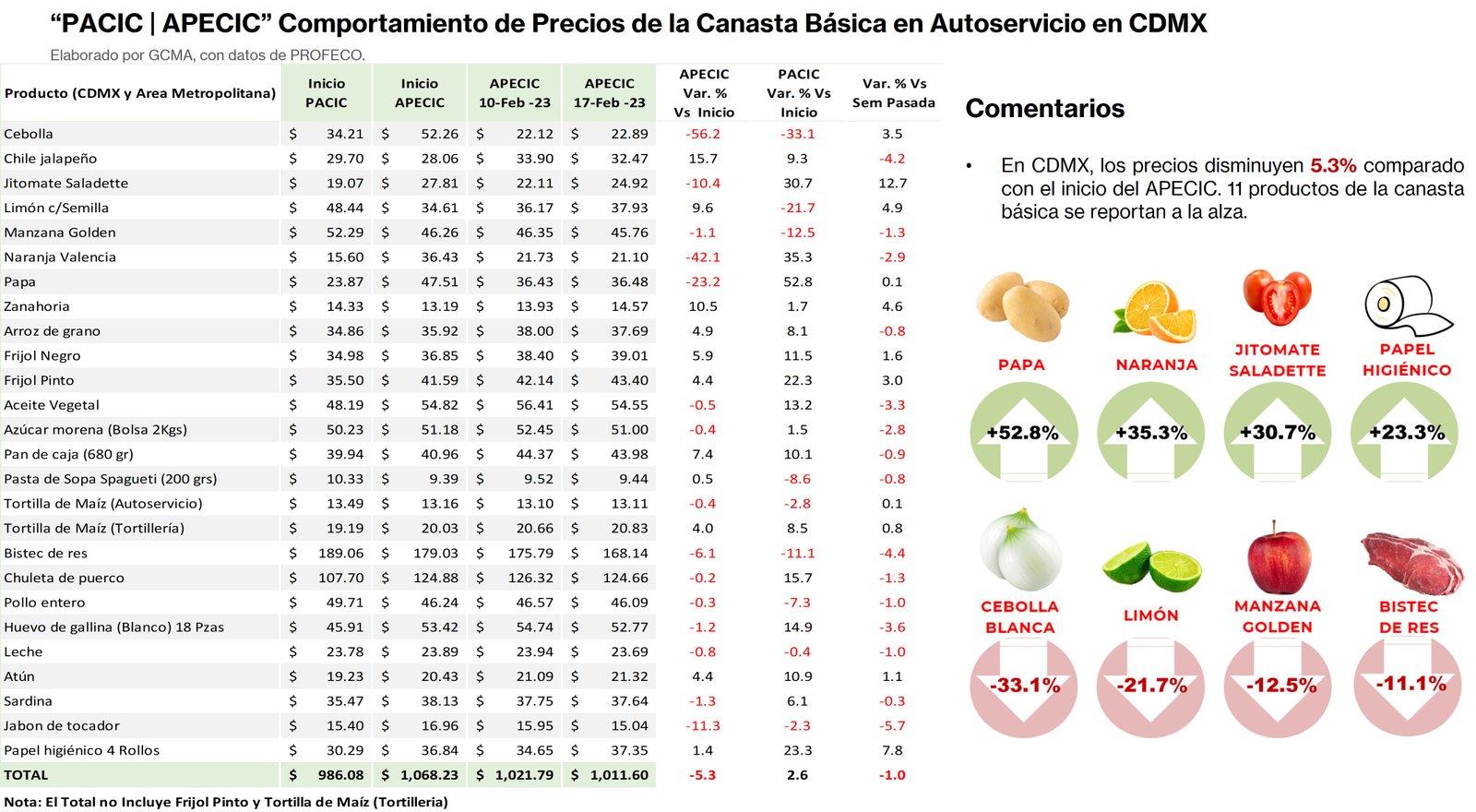 Al 17 de febrero, el precio de los Artículos de la Canasta Básica «PACIC | APECIC», se comportaron de la siguiente manera: