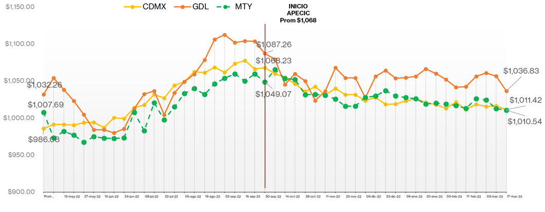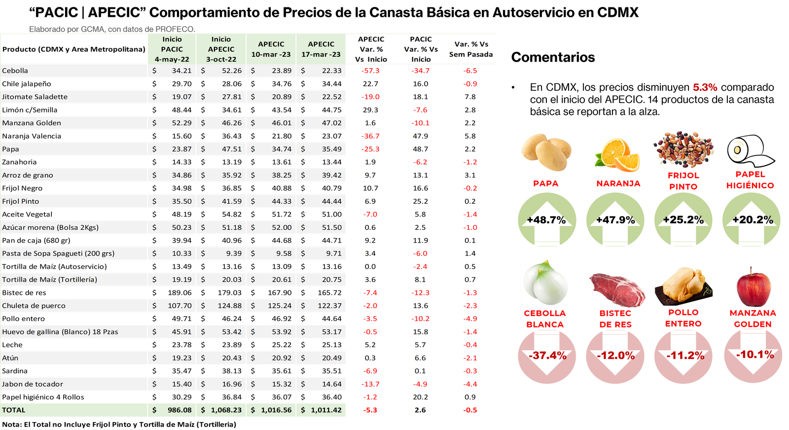 Al 17 de marzo, el precio de los Artículos de la Canasta Básica «PACIC | APECIC», se comportaron de la siguiente manera: