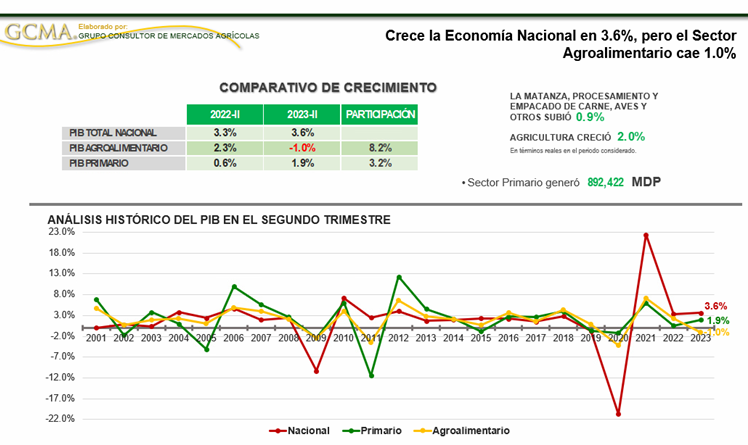 - En su comparativo anual la Economía Nacional repunta en 6% contra igual trimestre de 2022, sin embargo, el valor del PIB logra romper el nivel observado en los años pre-pandemia con 25.15 billones de pesos.