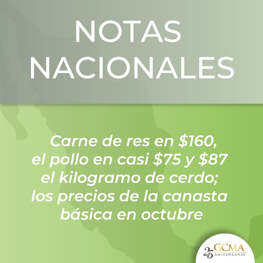 Carne de res en $160, el pollo en casi $75 y $87 el kilogramo de cerdo; los precios de la canasta básica en octubre.