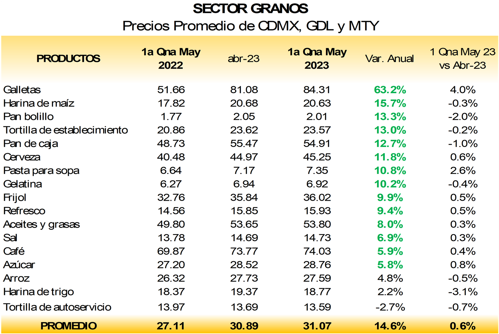 Fuente: GCMA, con datos de PROFECO | 1ª Quincena de mayo 2023.