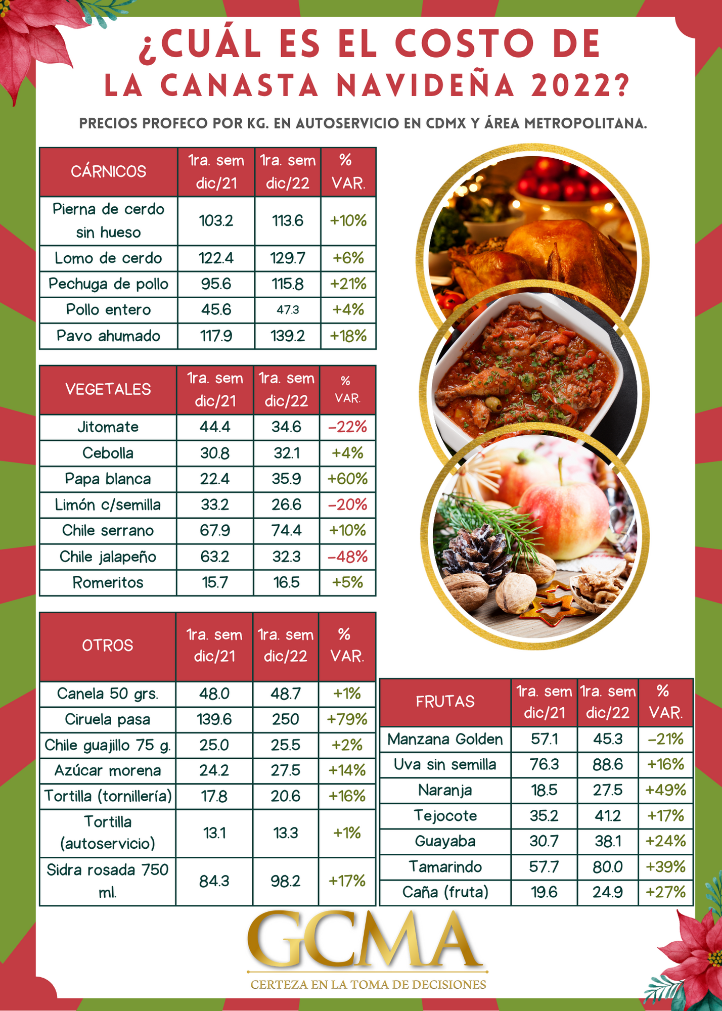 Seguimiento a la variación de precios de los productos de la Canasta Navideña 2022 vs 2021