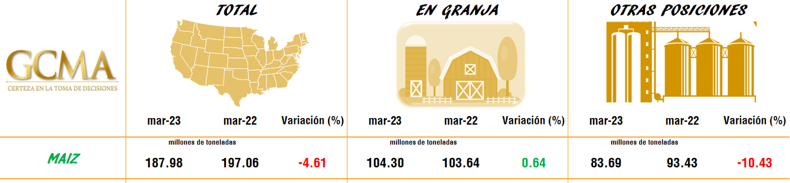 USDA MAÍZ: Reporte de Intención de Siembra 2023-2024 y Reporte de Inventarios 2022-2023 de Estados Unidos.