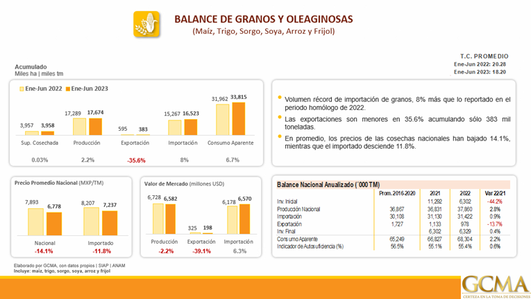 Depende el consumo nacional de granos en casi 49% de importaciones.