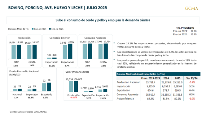 - Cerdo:Las exportaciones caen 16.4%; la demanda mundial se mantiene estable, aunque con una tendencia a la baja.