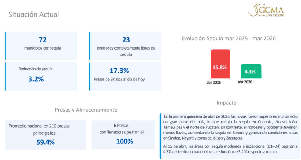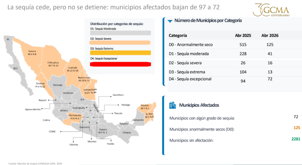 Con cifras del Monitor de sequía de la CONAGUA.