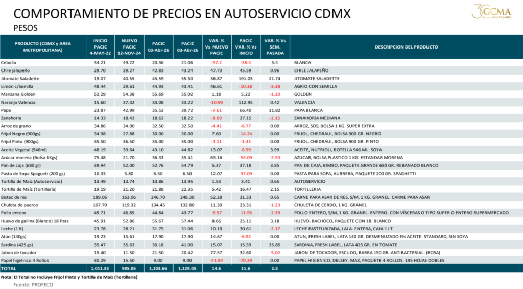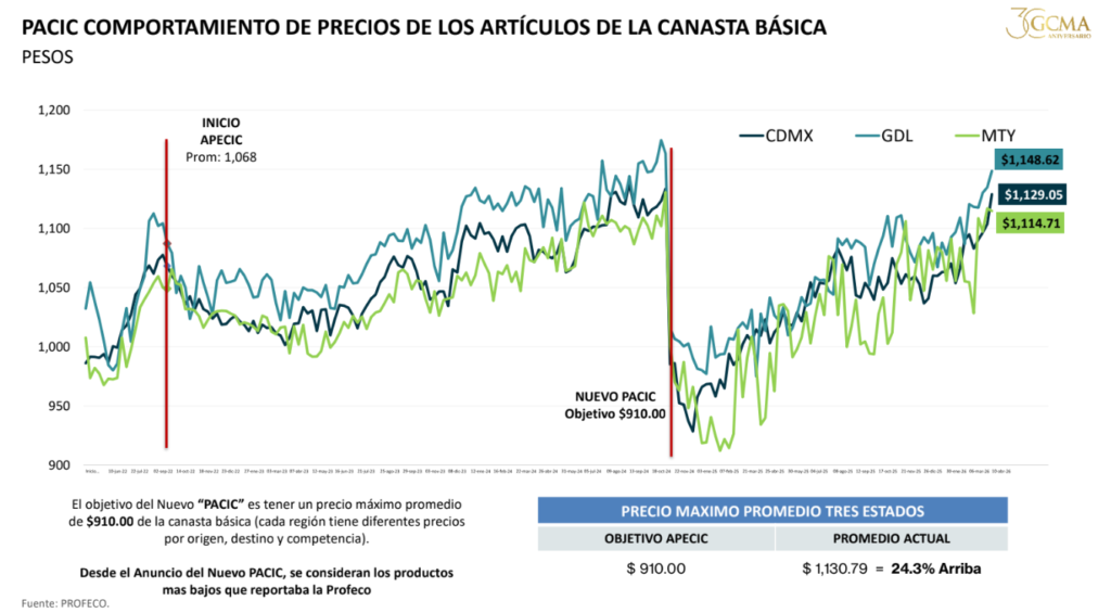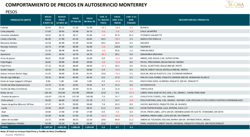 Al 6 de marzo el precio de los Artículos de la Canasta Básica «PACIC | APECIC», se comportaron de la siguiente manera: