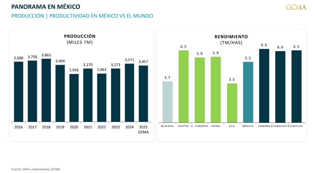 - Producción: México produciría ~3.5 MT, insuficiente frente al consumo.