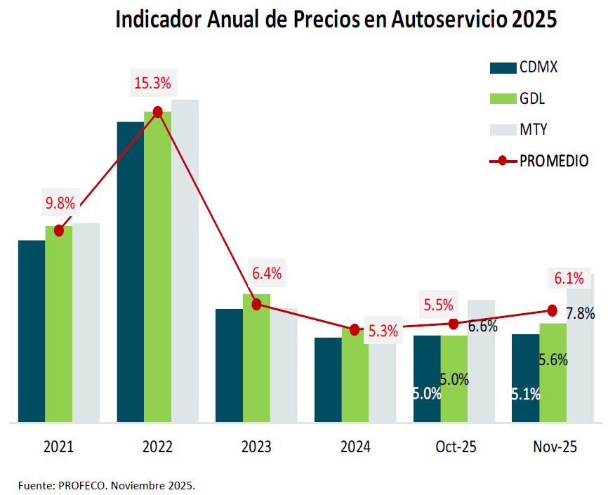Se incrementa 6.1% el índice de precios de la canasta básica al cierre del mes de noviembre de 2025
