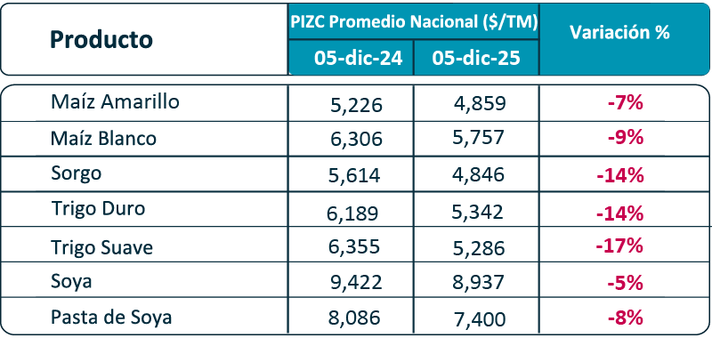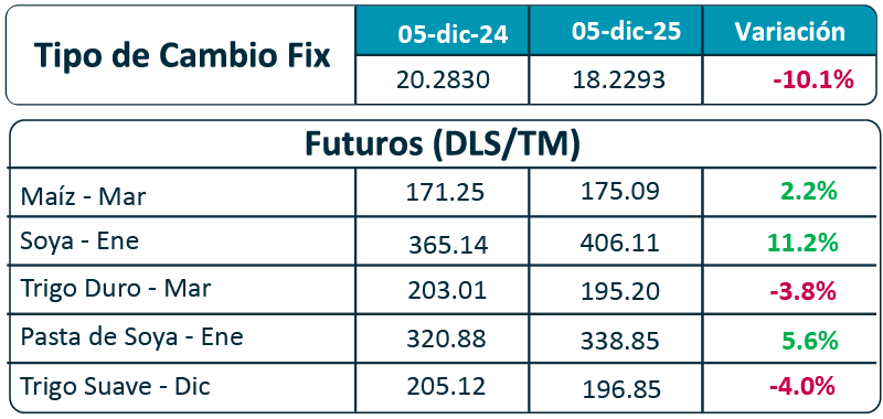 Te presentamos el comportamiento de los precios de indiferencia de algunos granos y oleaginosas del pasado 05 de diciembre: