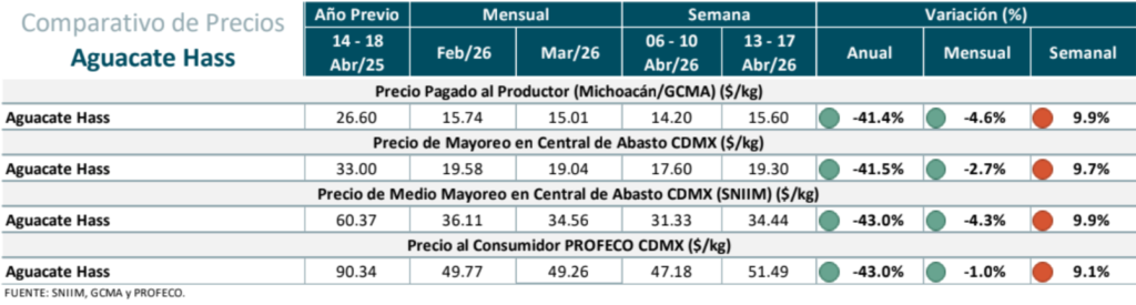 - El precio registró un ligero descenso, explicado por una oferta suficiente proveniente de Michoacán y por la calidad limitada del producto, principalmente en su tamaño. La demanda se mantiene estable, aunque el mercado refleja una tendencia a la baja que podría prolongarse en el corto plazo.