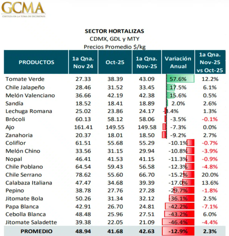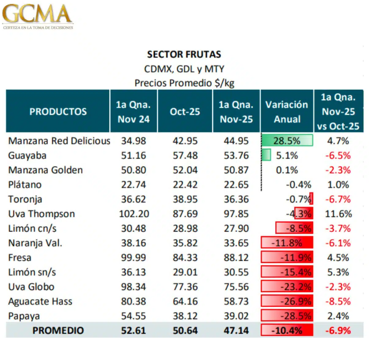 Análisis de productos con mayor incidencia quincenal2 (INEGI): A pesar de las variaciones quincenales dispares en tomate rojo (3.98%), aguacate (-4.83%) y papa (-2.61%), la sostenibilidad de estas variaciones enfrenta factores estructurales adversos: