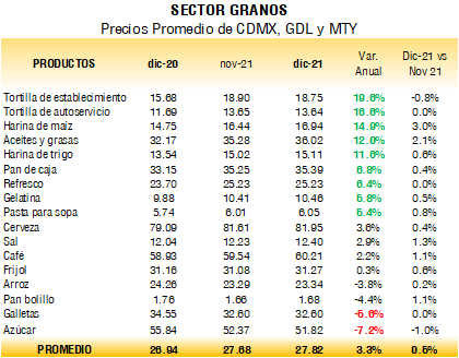 Se incremente 9.8% el índice de precios de la canasta básica en Diciembre 2021