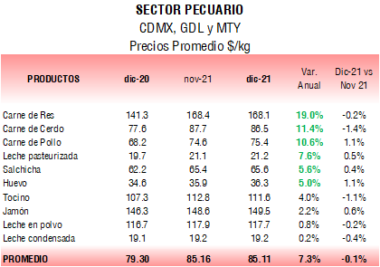 - Aumento en los precios de la cadena: Ganado para sacrificio 18.8% y la carne en canal 22.4%.
