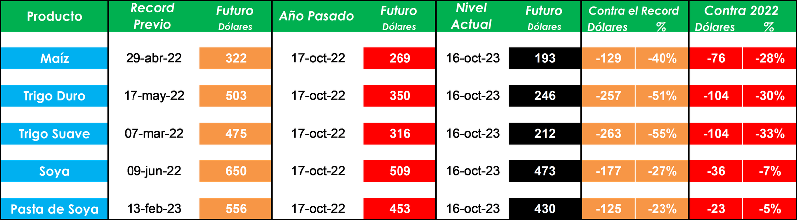 - Luego de seis semanas bajistas consecutivas, la soya logró un repunte parcial en Chicago. Las fuertes lluvias que se presentaron durante el fin de semana en algunas zonas de EUA podrían haber retrasado las labores de cosecha. Otro dato positivo es la expectativa de un reporte favorable de procesamiento de soya en Estados Unidos durante el mes de septiembre.