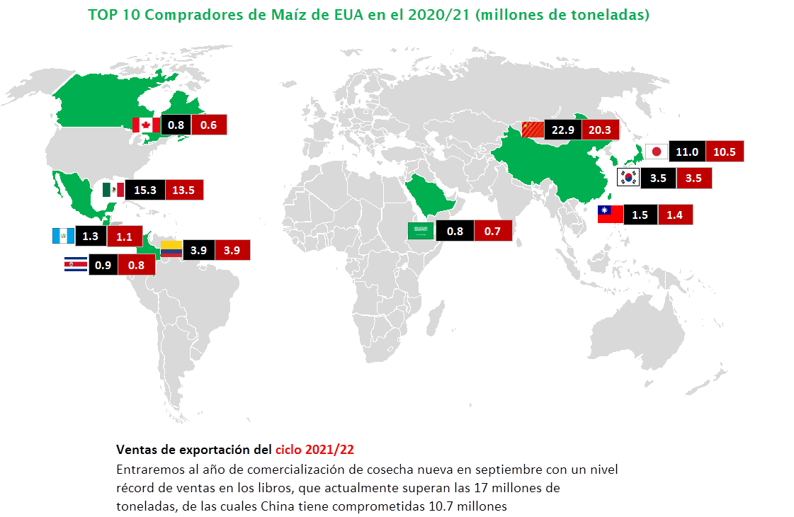 TOP 10 – Compradores de Maíz de EUA
