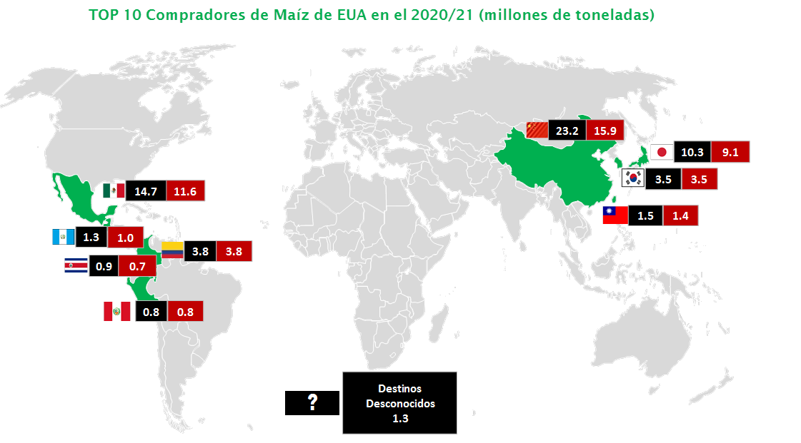 TOP 10 – Compradores de Maíz de EUA