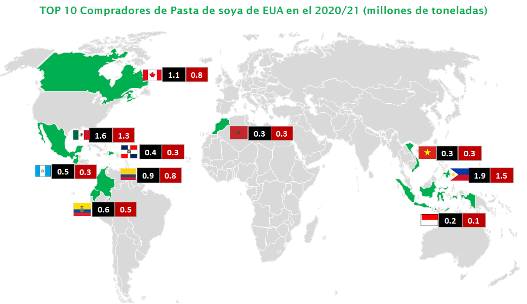 TOP 10 – Compradores de Pasta de Soya de EUA