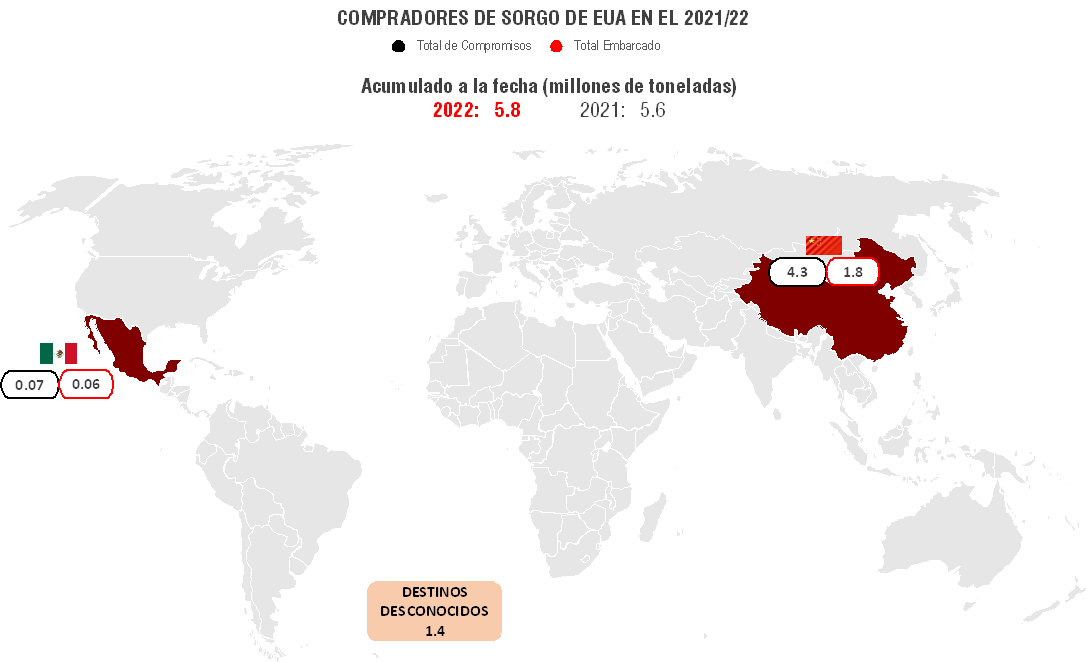 MAIZ.- El USDA reportó ventas por 1.091 millones de toneladas, por arriba de las 457,000 toneladas de la semana anterior y de las expectativas del mercado. Los compromisos de venta están 4.5 millones de toneladas por debajo del año pasado. Los rumores de grandes compras por parte de China la semana pasada están lejos de confirmarse, ya que el USDA señaló que China compró solo 77,000 toneladas.